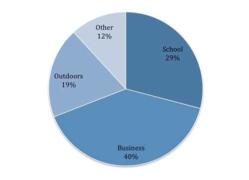 Image retrieved from https://leb.fbi.gov. Unsurprisingly, most of these events have occurred at businesses (Figure 2). Because these data are cause for grave concern for any organization, private or public, it is no wonder that many organizations are coming to grips with the reality of considering ways of dealing with, managing, and preventing these kinds of incidents to occur. Figure 2: Locations of Active Shooter Incidents